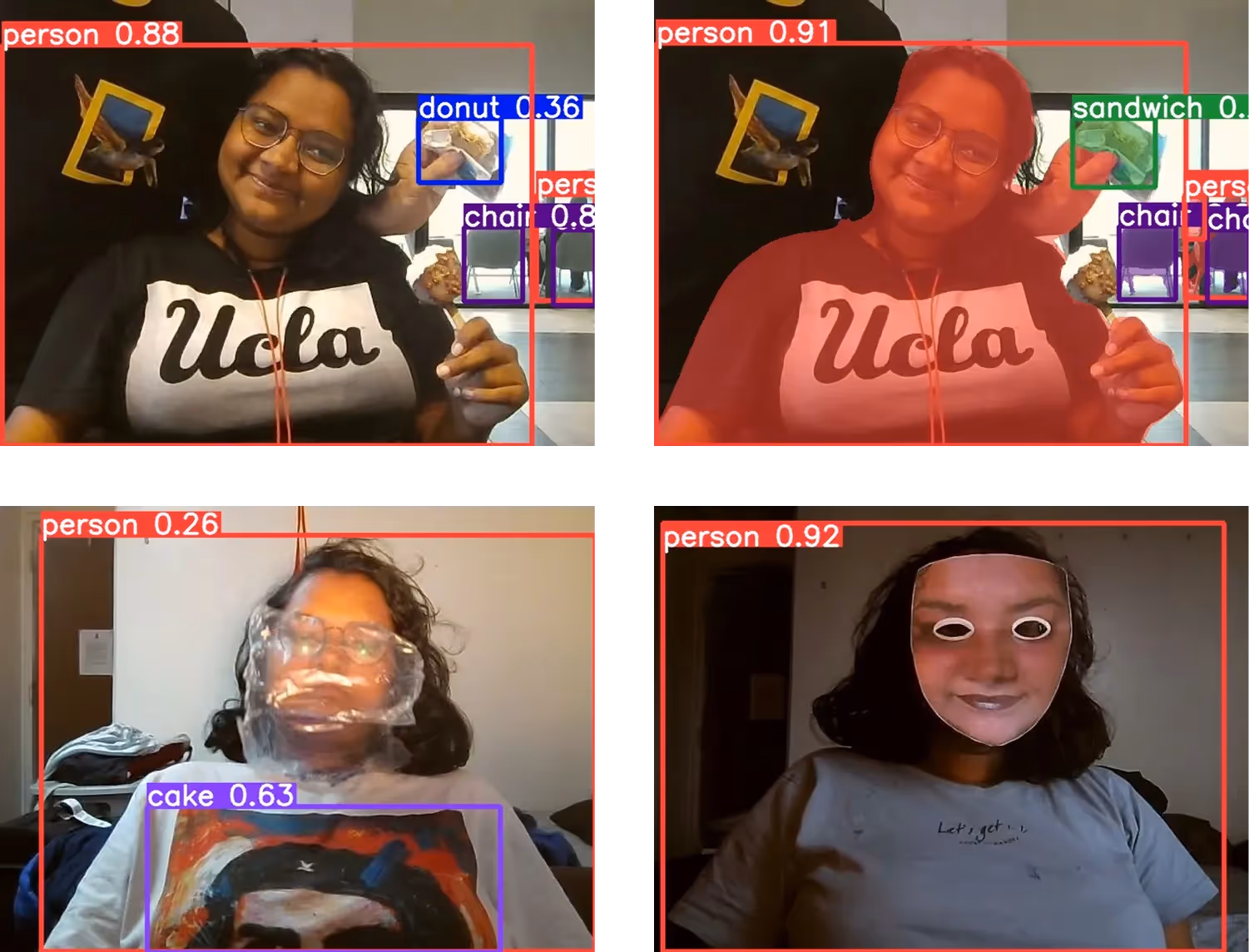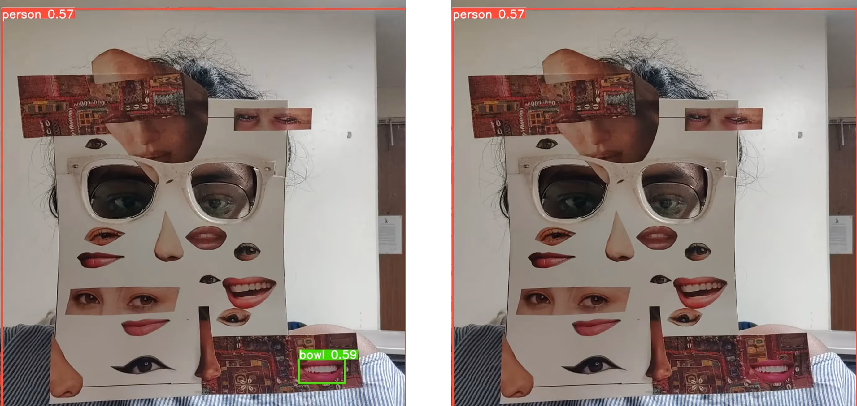 Proxy Faces is a provocative exploration of the fragility of modern facial recognition systems, even as machine learning grows increasingly sophisticated. Leveraging YOLOv7—a state-of-the-art object detection model—this project challenges the reliability of AI by designing physical "adversarial tools" that trick algorithms into misidentifying human faces. Starting with simple hacks like holding an ice cream cone or covering my face with translucent plastic, I discovered how minor alterations could confuse the model. But the real breakthrough came when I designed a wearable, rectangular mask devoid of facial depth, combined with magazine-cutout eyes and lips. Attached to modified sunglasses for practicality, this prototype successfully deceived YOLOv7, exposing how even advanced systems struggle with flattened, artificial features.